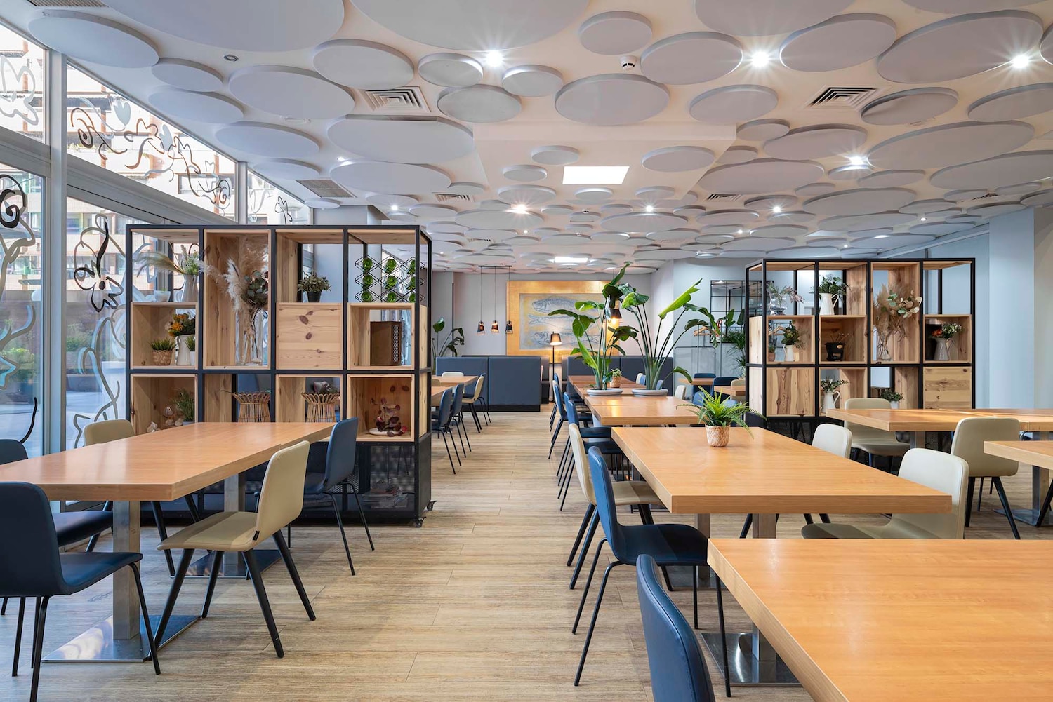 Its modern, light-filled architecture stands out for a spacious central courtyard with panoramic lifts that allow guests to admire the building’s internal structure. The experience is completed by its restaurant, a welcoming café, and private parking — services designed to meet your needs, whatever the purpose of your trip.