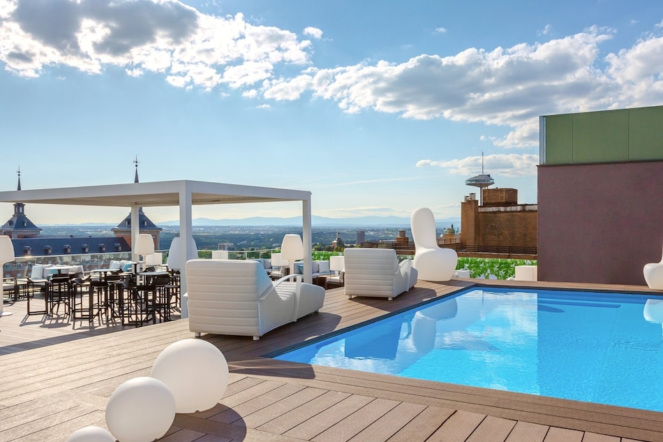 Crowning the top floor of the Exe Moncloa is one of the most privileged places in Madrid. The West terrace, a space that is framed by the views of the Guadarrama Mountains and the Castilian plain, offers an exclusive panoramic view of the city, as well as an ideal environment to spend a relaxed afternoon in good company. The terrace is open only during the summer season.