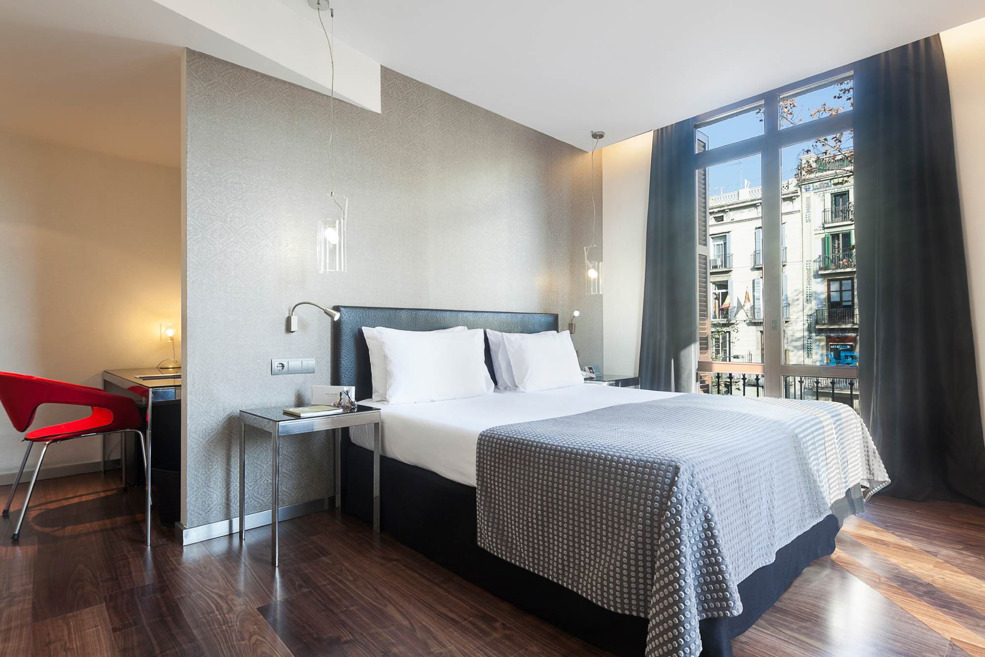 From our soundproof rooms designed to ensure your rest, you can enjoy the vibrant city views and the colorful Mediterranean market. Every corner of the hotel is designed with a fresh and bold touch, inspired by the energy of La Boquería.